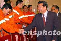 中国国务院副总理回良玉六月五日在北京人民大会堂接见中国国际救援队。中国国际救援队五月下旬赴阿尔及利亚地震灾区担负救援工作,并圆满完成任务。这是中国国际救援队成立近两年来首次执行国际救援任务。中新社记者:张炜