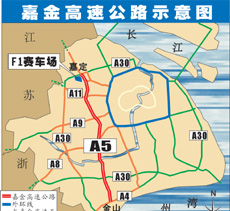 上海嘉金高速公路发展有限公司董事长张荣坤表示,为配合国际汽车城F1赛车场的建设,工程指挥部将采取进一步的技术措施和加快建设速度,一期工程(嘉定至北青公路)将提前于明年九月建成通车,以确保F1国际赛车大赛顺利进行;整个工程将于二00五年底全线建成通车。