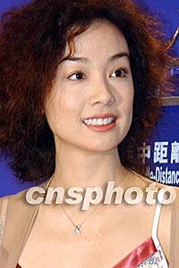 香港艺员江美仪六月十日出席“2002/2003年度香港赛马会冠军人马奖颁奖典礼”记者会。钱兴强 摄