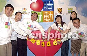 6月10日,香港医学会会长劳永乐、副会长冯宜亮医生、中大医学院副院长沈祖尧教授、中大香港健康情绪中心主管李诚教授、商台总经理黄宝珠及「心晴大使」杨千桦在香港进行心情行动「公开心晴」启动仪式。邓庆乐 摄