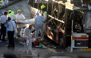 中新网6月12日电 以色列耶路撒冷邮报6月11日报道称,制造了这起震惊国际社会的耶路撒冷公共汽车爆炸事件的“自杀炸弹”是假扮成一名犹太教信徒混上的公共汽车,然后制造了这起恐怖事件。