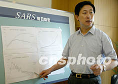 北京市SARS医疗救治指挥中心总指挥韩德民,6月11日介绍北京SARS疫情来得猛,走得快的四个原因。中新社记者 任晨鸣 摄