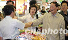 六月十三日,北京市代市长、北京防治非典型肺炎联合工作小组副组长王岐山到北京市百货大楼视察,了解北京非典疫情平稳后的商场经营情况。中新社记者:盛佳鹏