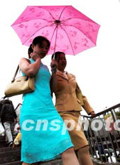 青春靓丽的北京姑娘在淅淅沥沥的小雨中到商业街购物。中新社记者:邹宪