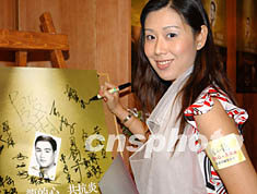 曾获香港国际亲善小姐称号的殷莉,六月十四日出席在香港举行的「龙的心、共抗炎,李小龙慈善珍藏电话卡公开发行」活动。钱兴强 摄