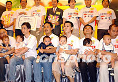 香港六月十五日举行不同形式的欢庆父亲节活动,在时代广场,众多年轻父亲带着小朋友参加在这里举行的题为“做个健康爸爸努力保护头家”的活动。钱兴强 摄