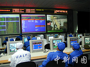 中国酒泉卫星发射中心发射测试指挥大厅。中新社记者孙自法摄