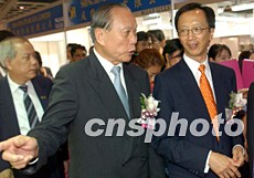 “六月香港珠宝钟表展览会”2003年6月19日在香港会展中心开幕,香港特别行政区财政司司长梁锦松(右)出席开幕式并参观展览。中新社记者:钱兴强