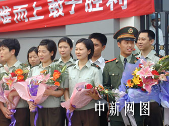 今天出院的病人,最大的65岁,最小的15岁。他们显得特别兴奋,一出院门就拼命向我们挥手,我把手里的鲜花献给了一个女孩,她用不太标准的手势向我敬了一个军礼,“谢谢解放军,希望你们也能赶快回家和亲人团聚。”她微笑地扬起了脸,在阳光下洋溢着健康的一张娃娃脸,我喜欢这张脸。