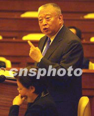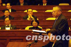 六月二十六日,香港特首董建华出席立法会“国家安全(立法条文)条例草案”委员会举行的行政长官答问会。中新社记者 潘索菲
