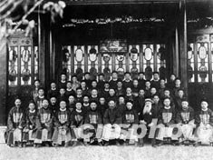 图为1900年英国伯明翰造币厂工程师(前排右四)访华,佩戴中国清政府授予的“蓝绶双龙”勋章与官员合影。 中新社 图
