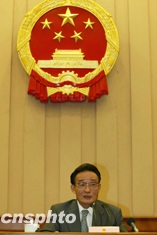 十届全国人大常委会第三次会议二十八日在北京闭幕,全国人大常委会委员长吴邦国主持会议并讲话。会议通过了居民身份证法等法律。中新社记者:满会乔
