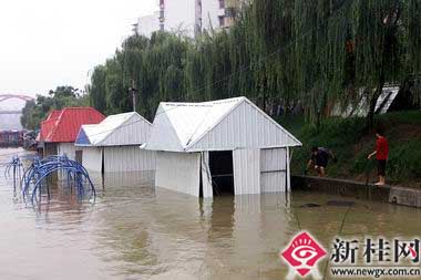 由于上游接连普降大雨,漓江水位迅速上涨,至6月27日9时30分,达到147.09米,比去年最高洪峰超出0.17米,超过30年一遇特大洪水。为了确保游览漓江游客的生命安全,桂林市海事局发出封航令,漓江全线封航。