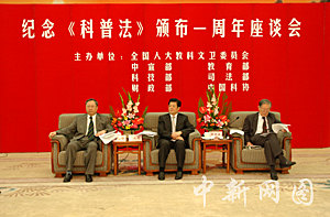 为此,中国全国人大教科文卫委员会、中共中央宣传部、教育部、科技部、司法部、财政部和中国科协二十九日联合在北京人民大会堂举行座谈会,纪念这一世界首部科普法规诞生一周年。