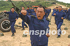 东海舰队某高炮团在军事训练中,坚持把体能锻炼与军事技术、战术训练紧密结合起来,充分利用业余时间开展体育锻炼活动,有效地增强了官兵的体质。图为部队利用转场训练的业余时间,在进行军体拳训练。作者:钟魁润