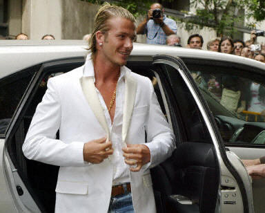 贝克汉姆当天乘私人飞机从英国伦敦飞抵马德里军用机场,在妻子和大儿子的陪同下,在马德里一家医院进行了体检。体检后,皇家马德里队医生说,贝克汉姆已经顺利通过了包括心脏功能、体力、脚、腿等各项检查,他“壮得像头牛”。