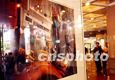 香港一家购物商场展出医护人员医治SARS病人的照片,提醒市民不可掉以轻心,预防病毒死灰复燃。洪少葵 摄