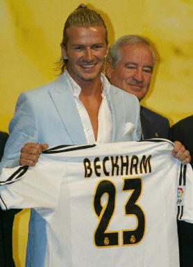 中新网7月3日电 1997年,曼联的法国球星坎通纳(Eric Cantona)退休后,贝克汉姆就取而代之,成为7号球衣的主人。在国家队里,他的球衣号码也是7号。可是皇马的7号球衣已归主将劳尔,依照惯例,贝克汉姆必须另选号码。