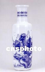 图为清康熙青花山水人物图大棒槌瓶,是难能可贵的大器,估价五十万元人民币。中新社图