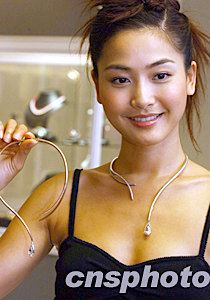 中新网7月4日电 “香港佳士得2003年瑰丽珠宝及翡翠首饰春季拍卖会”昨天举行,邀得周汶锜(Kathy)担任模特儿。