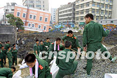 四日,数百名武警冒着酷暑进行上海轨道交通4号线渗水事故抢险,一度被黄浦江潮水冲出缺口的堤坝已经得以加固。作者:汤彦俊