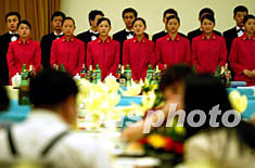 为了活跃现场气氛,旅游局还安排了杂技、民乐表演,供游客们观看。据悉,为了尽快恢复旅游市场,北京市旅游局制定了一系列救市措施,最先到京的1500名境外游客将免费享受一次国宴就是其中之一。据介绍,宴请境外游客的做法曾经在接待庆祝中日邦交正常化30周年到京的日本团时采用过,不少客人将此视为一种殊荣。