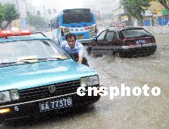 7月4日晚,一股强降水突袭南京。据南京市防汛指挥部的统计,从7月4日夜8:00到7月5日早上8:00,南京城区的降雨量达到了罕见的216毫米,浦口降水量也达146毫米。次此降水是近15年来最大的一次。郊区东山、高淳、溧水也分别下了95毫米、12毫米和58毫米的雨。这种大范围、高密度、强持续降雨,给南京的防汛防洪带来了严峻的考验。 吴俊 摄