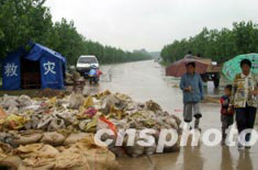七月,为迎战淮河更大的洪峰,安徽阜南地区准备了充足的抗洪物资。中新社记者:盛佳鹏