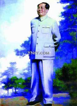 已故著名油画家董希文的《开国大典》是新中国油画艺术的开篇力作之一,但因画家过早去世,留存下来的只有少量作品,本次拍卖的董希文于1953年创作的《无限风光》(毛主席全身像,尺寸:143.5×102.5cm),历经50载沧桑,如今亮相拍场,实属意外的惊喜,成为本场拍卖会的一大亮点,以22万元的价格成交。在这幅油画中,毛主席背着双手昂首站立在挺拔翠绿的松树旁,炯炯的眼神中透露出对祖国未来的无限自信。