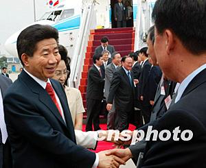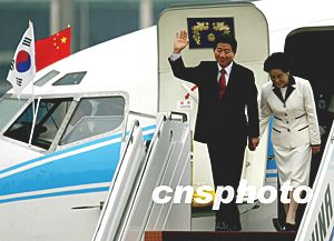 韩国总统卢武铉七日上午抵达北京,开始其访华行程。卢武铉将在北京停留三天后,访问上海。中新社记者:郑萍萍