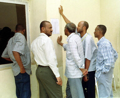 图为遇难航班旅客的亲属在苏丹航空公司查看遇难者名单