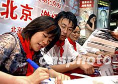 组图:桑兰等签名售书庆申奥成功两周年