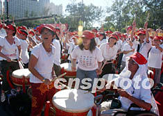 中新网7月14日电 香港昨日击鼓创造三项世界纪录,二千多名鼓手同时敲击中国鼓﹑世界最大的中国鼓和铜锣。香港中乐团主办的“香港鼓乐节”昨天下午在维多利亚足球场举行“澎湃活力,香港同心”开幕式,打破三项世界纪录。