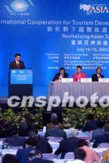 由博鳌亚洲论坛、世界旅游组织合办的“重振亚洲旅游业会议”,7月14日在香港会展中心举行。会议主题是重振亚洲旅游业,在SARS对亚洲旅游业打击以后,如何恢复人们对旅游业信心。中新社记者:洪少葵