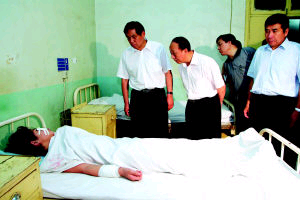昨晚8时许,省委副书记、西安市委书记栗战书,西安市市长孙清云,市委副书记、常务副市长陈宝根,市委副书记、市纪委书记焦安发等前往医院,看望了爆炸事件中的伤者,询问了他们的伤情,听取了医院关于救治工作的汇报,对救治工作表示满意并提出明确要求。