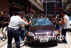 香港大批新闻记者,7月16日聚集在英皇集团总部,追访商人杨受成涉案到廉署助查事件。中新社记者:洪少葵