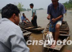 多图:淮河灾民忍痛卖鱼:一元钱三斤!