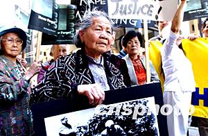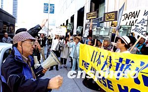 七月十八日,美国旧金山日本侵华浩劫纪念馆举行“为正义而呼唤!为史实而抗议!”的示威游行,百余名华人前往日本驻旧金山领事馆递交抗议书,要求日本承认“对华侵略”,真心悔改,“向中国人民谢罪道歉”,对受害者“作出公平的赔偿”。作者:陈钢