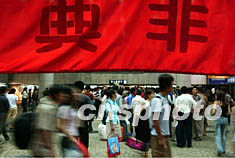 七月二十日,抵达北京西站的乘客不再测量体温。从当天开始,非典期间实行的中国铁路旅客填写“健康申报表”制度正式取消,旅客出站也不再需要进行体温检测,但进站旅客仍需检测体温。中新社记者:张炜