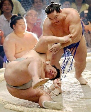 大关级的相扑冠军魁皇19日在名古屋大相扑锦标赛上摔倒了大关级的武双山。魁皇于7月20日与另一名大关级选手千代大海举行决赛。
