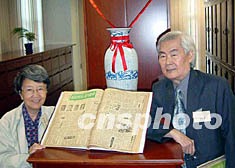 香港中文大学在网上推出有22年历史的《中国学生周报》,让全球读者自由阅览。七月二十一日,该报前社长林悦恒(右)及香港中文大学香港文学研究中心主任卢玮銮(小思)向媒体展示《中国学生周报》。作者:张慧愉