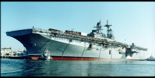 “硫黄岛号”是美国海军2001年股役的最新大甲板两栖攻击舰(LHD),也就是常说的直升机航母。该舰由英格尔斯船厂建造,是“黄蜂”级两栖攻击舰的第七艘。“硫磺岛”号排水量40500吨,载员3200人。该舰将加入美国大西洋舰队。作为美国海军和海军陆战队的两栖战备部队的大甲板攻击舰,LHD可为海军陆战队远征部队提供搭载、运输、部署和指挥支持。该舰可提供完全的两栖攻击、运输先遣部队和进行特种作战的功能。
