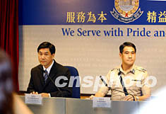 香港警务处刑事及保安处处长周富祥[左]及行动处处长邓竟成,7月22日会见新闻界,回顾香港今年上半年的罪案情况及警方工作内容。作者:洪少葵
