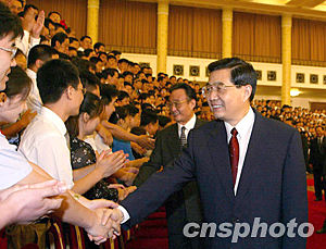 组图:胡锦涛等接见中国共青团十五大代表