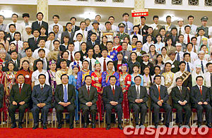 中共中央总书记胡锦涛等党和国家领导人,二十二日在北京出席中国共青团第十五次全国代表大会开幕式,并在会前接见大会代表。中新社记者:满会乔
