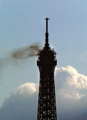 中新网7月23日电 据法新社报道,位于巴黎市塞纳河南岸的埃菲尔铁塔22日傍晚顶层突然起火,从电视画面上可以看到滚滚浓烟像巨浪一样涌向天空。