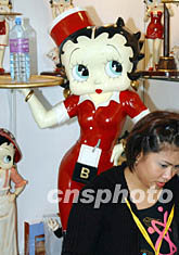 香港家庭用品、礼品及赠品综合展,七月二十三日在香港会展中心开幕,图为展会上端托盘的卡通人别具特色。中新社记者:钱兴强