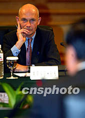 出席七月中国大连第五届亚欧经济部长会议的欧盟委员会贸易委员拉米,与中国商务部部长吕福源就世界贸易组织新一轮多边贸易谈判的有关议题深入交换了意见。 中新社记者:郑萍萍