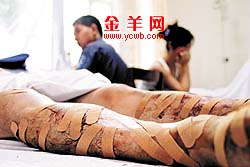 一名伤者的两条腿被枪击中,满是弹眼 新快报记者 王小明/摄