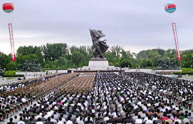 中新网7月26日电 朝鲜首都平壤市各界人士26日清晨举行中央报告大会,隆重纪念朝鲜祖国解放战争胜利50周年。